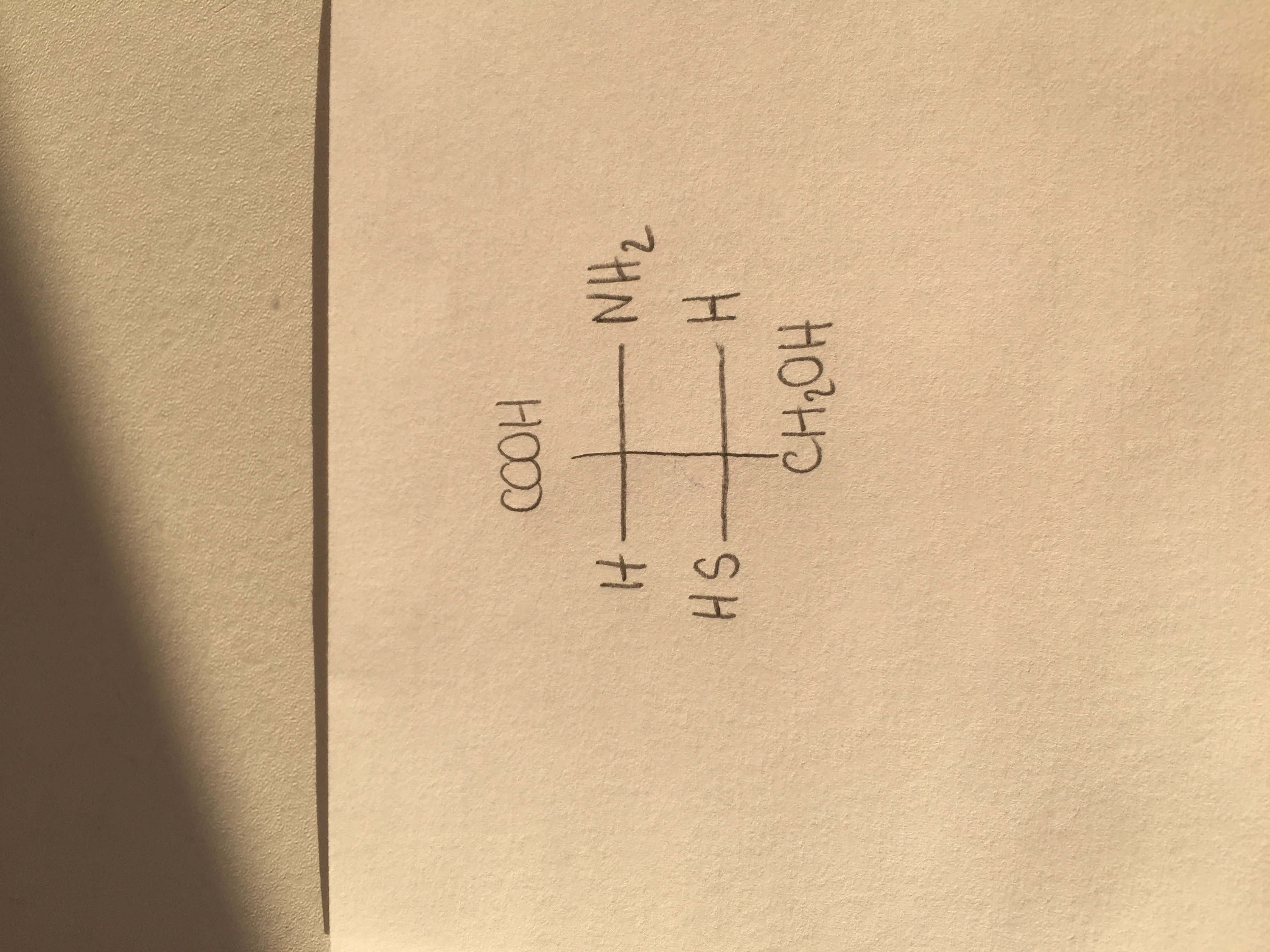 —> est ce que c’est D (on regarde par rapport à l’amine) ou L (si on regarde par rapport au groupement thiol) ?