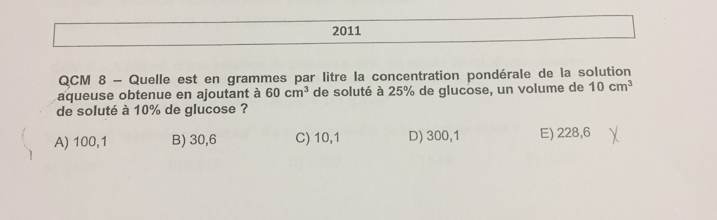Coucou est ce que vous pouvez m’expliquer le détail de ce qcm des annales 2011 svp je n’en commrends pas du tout la méthode de résolution merci d´avance