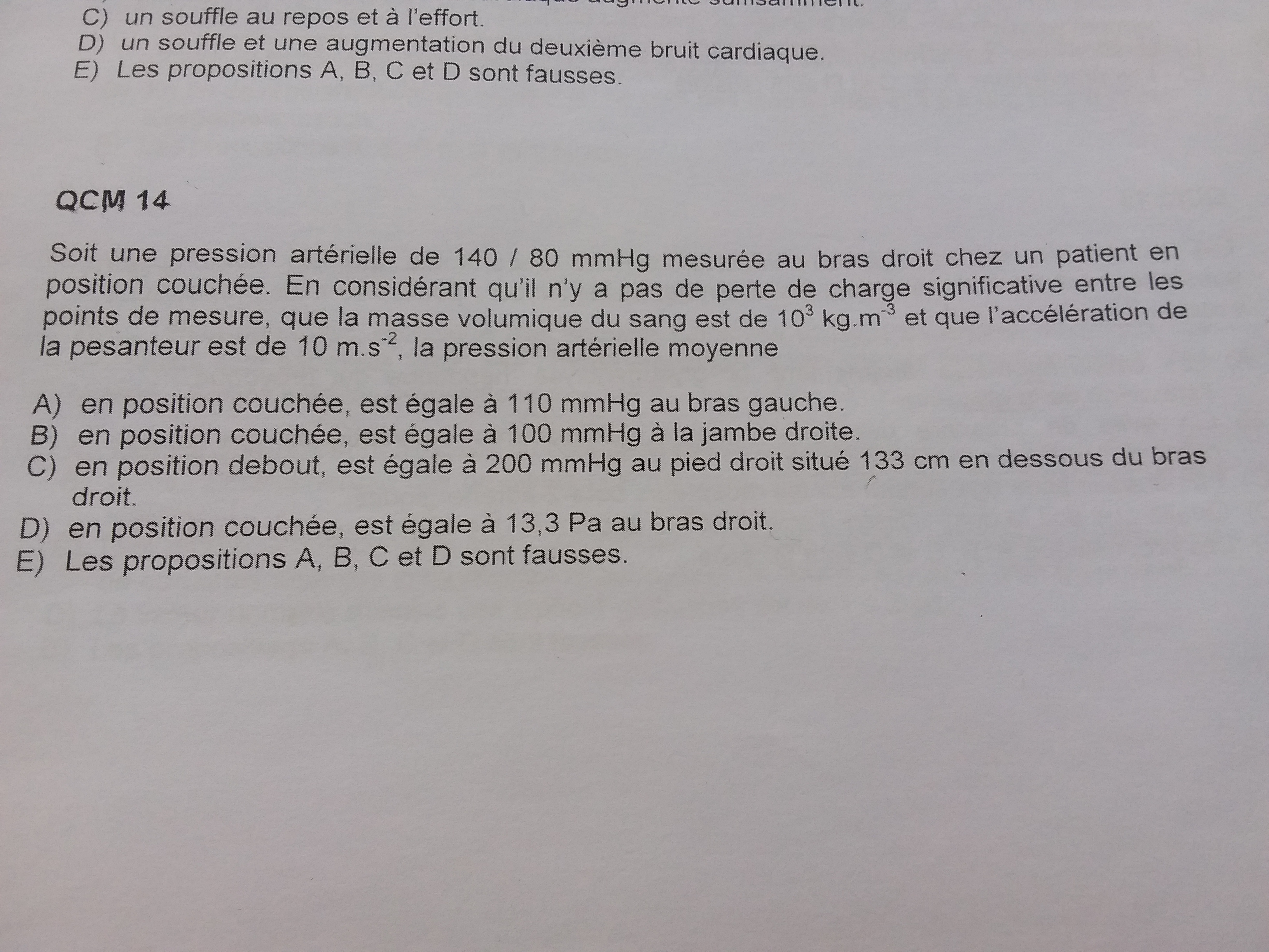 La PAM du patient est de 100 mmHg comme dans le cours donc en kPa c'est 13,3 kPa
