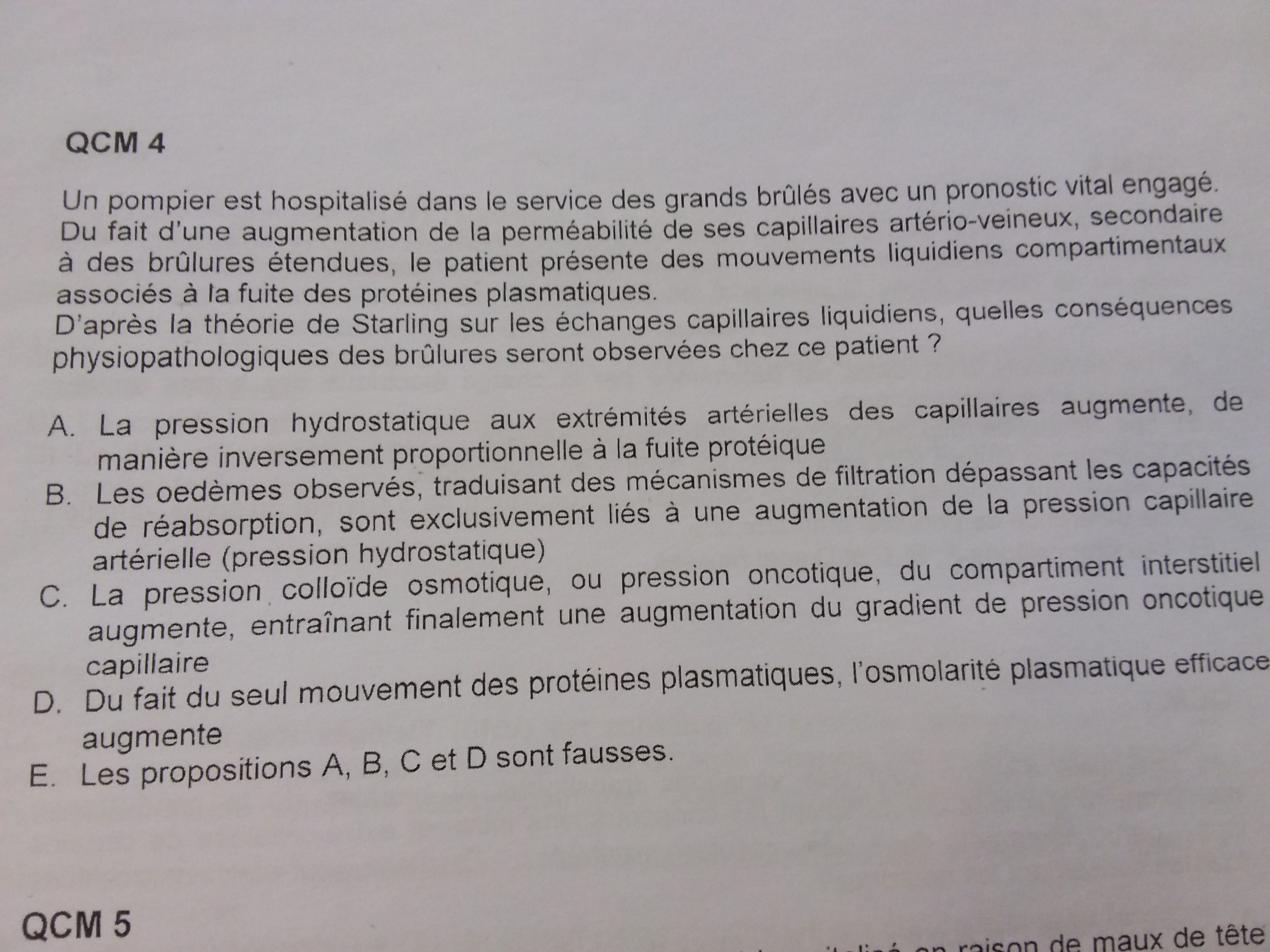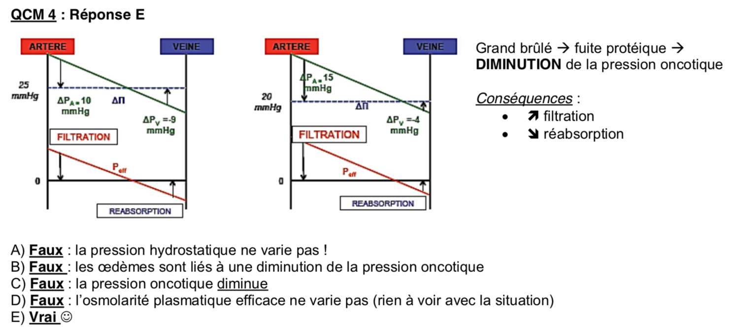 Je vous explique mon raissonement: vu que la pression oncotique diminue, il y a plus de filtration que de réabsorption. Donc le volume du plasma diminue. Mais on a une même concentration en osmoles, donc on peut dire l'osmolarite plasmatique augmente non? ?