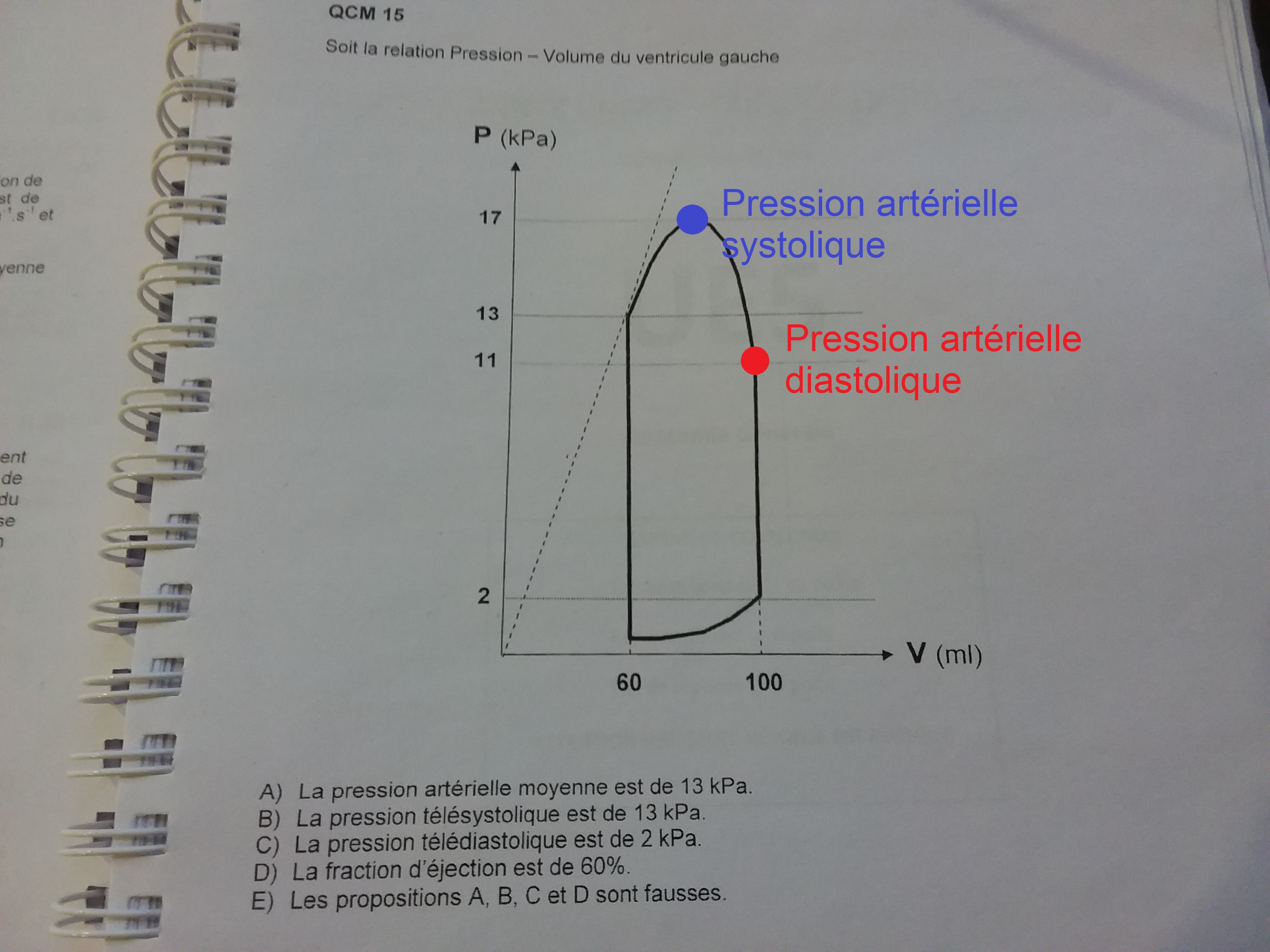 Dans cet autre qcm d'annales 2012-2013, la correction dit que la PAdiastolique = 11kPa avec comme justification "moment où la valve d’éjection s’ouvre car la pression intra VG devient supérieure à la pression minimale aortique".