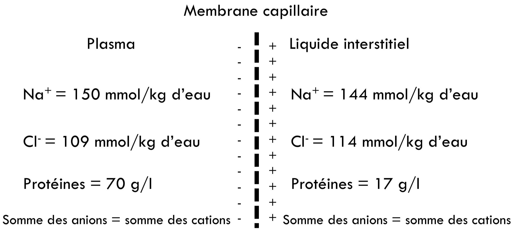 Alors tu vois bien que le plasma est plus concentré en Na que le LI et inversement pour le Cl-. Ce qui explique cette asymétrie de répartition, c'est l'effet Donnan (