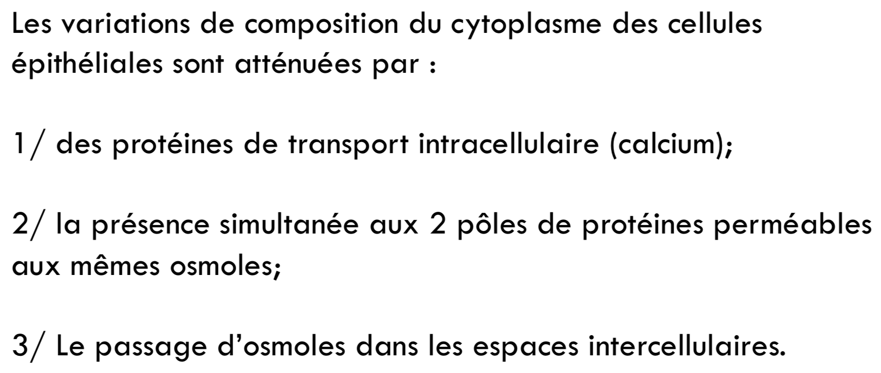 Salut, merci pour ce tut ! J'ai une question a propos de ces 2 items, je comprends pas comment un passage paracellulaire (qu'il soit par diffusion simple ou facilitée) pourrait modifier la composition cytoplasmique des cellules epitheliales, etant donné que paracellulaire ca veut dire que les molecules passent entre deux cellules genre ca touche pas au milieu intracellulaire non ? Merci d'avance jsuis peut etre a coté de la plaque ?