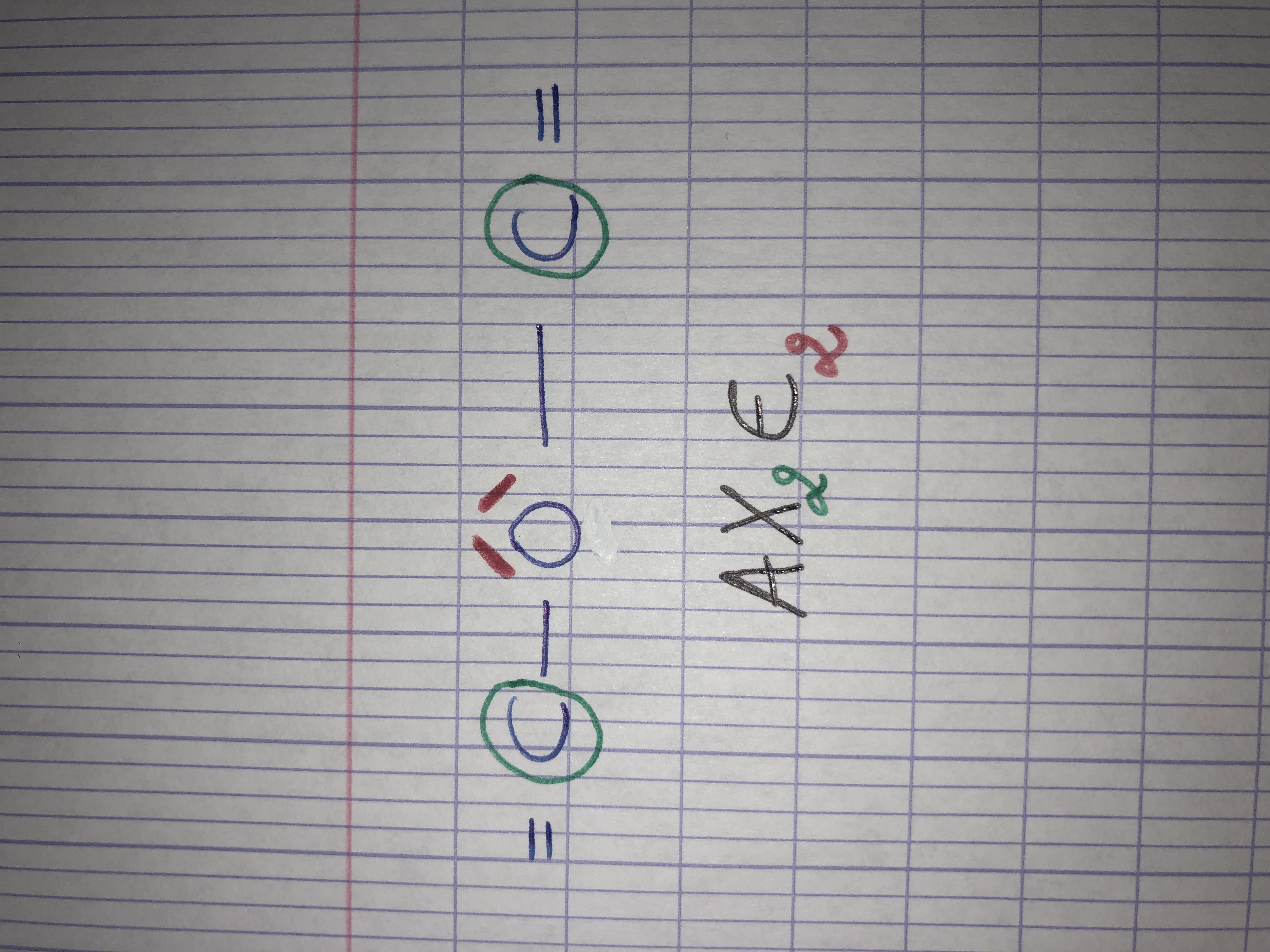 Je ne comprends pas très bien pourquoi le prof dit que l’atome d’oxygène (pièce jointe ci-dessous) est dans un état VSEPR AX2E2.