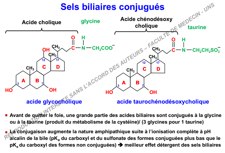 Donc ici tu vois bien qu'en conjuguant nos acides biliaires, ça devient des SELS BILIAIRES ( j'ai répondu à un post sur ça si c'est pas clair
