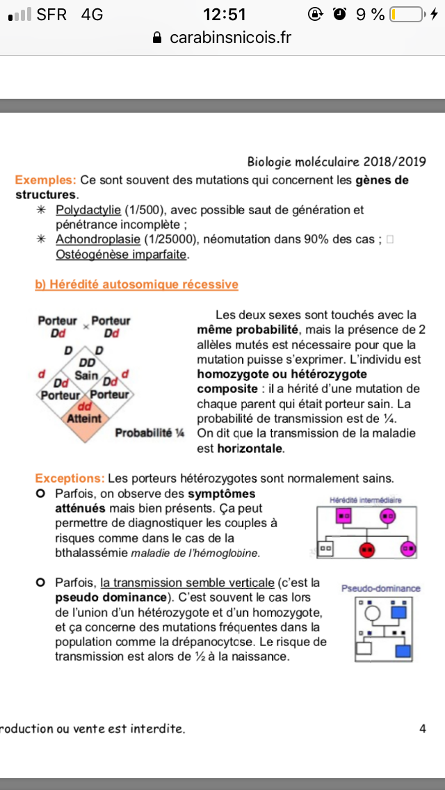 A) Faux : pas obligatoirement il peut être homozygote