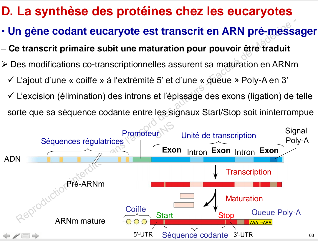 les régions en amont : coiffe + région 5'UTR ne seront pas traduiteNtb: de même la portion après le codon stop : région dite 3'UTR et la queue poly-A ne seront pas traduites