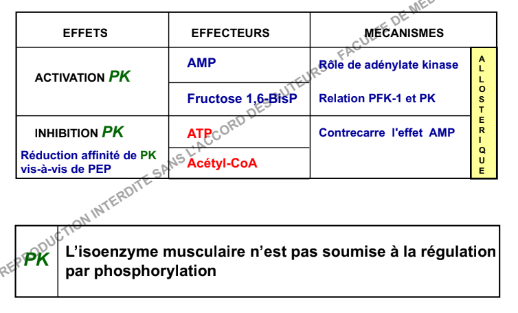 Alors que pour la glycolyse musculaire il n'y a PAS de régulation covalente! La PFK-2 est une régulation spécifique du foie, la PFK-1 n'as pas de régulation covalente, c'est uniquement allostérique et enfin l'isoforme musculaire de la pyruvate kinase (PK) ne possède pas de régulation covalente! (je te met les diapos pour te montrer tout ça !