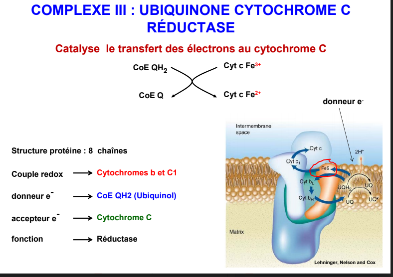 Alors retiens ce qui est dit dans la diapo récap ! De plus sur le schéma de la prof on peut voir la présence d'une protéine Fer-S ! Je te met la diapo... :) <3