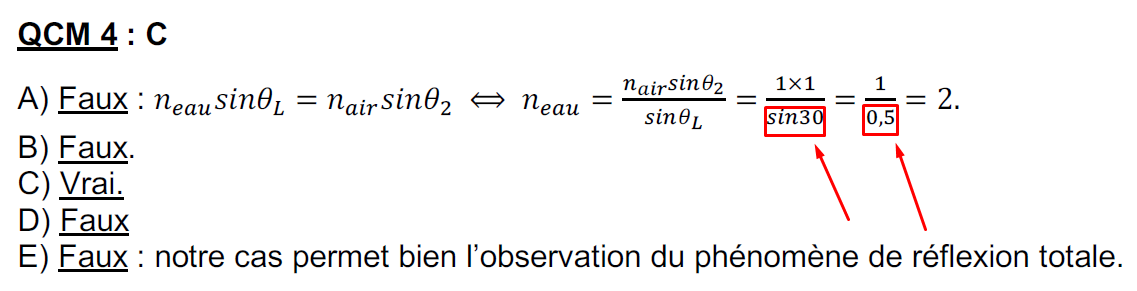 concernant le qcm 4 on ne peut pas utiliser la formule de sin 30 = 1/2 ?