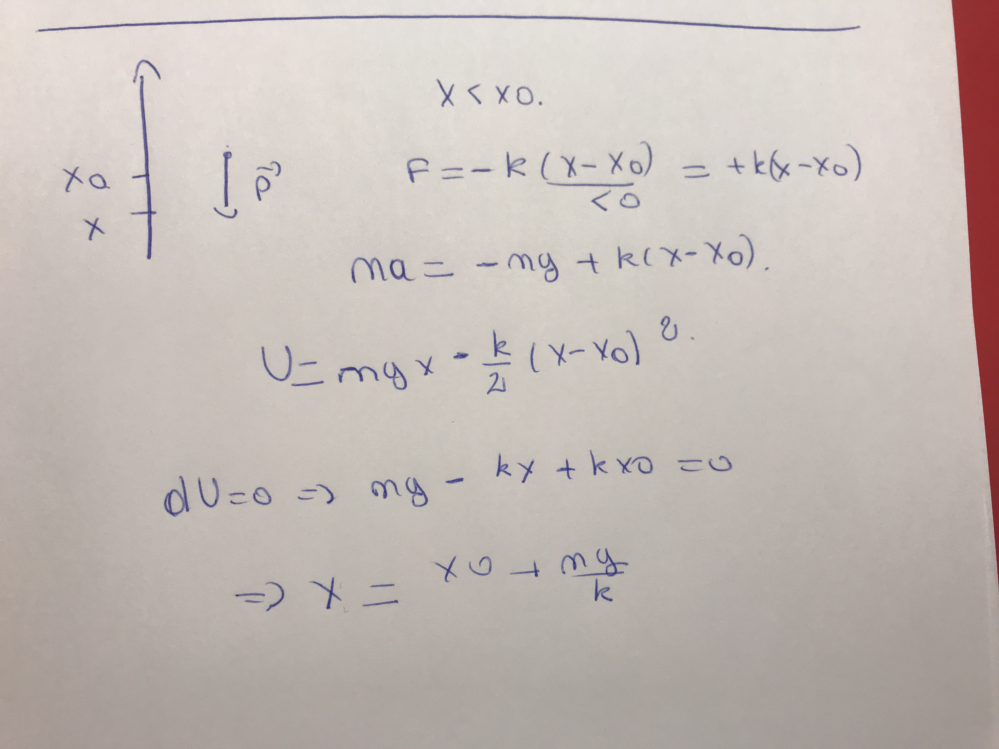 Et pour la force de rappel je suis toujours hésitante par rapport au signe. Là j’ai considéré qla formule avec le loins et j’ai travaillé en fonction de x et x0 mais je n’ai pas l’impre Que ça marche à chaque fois. Une astuce ?