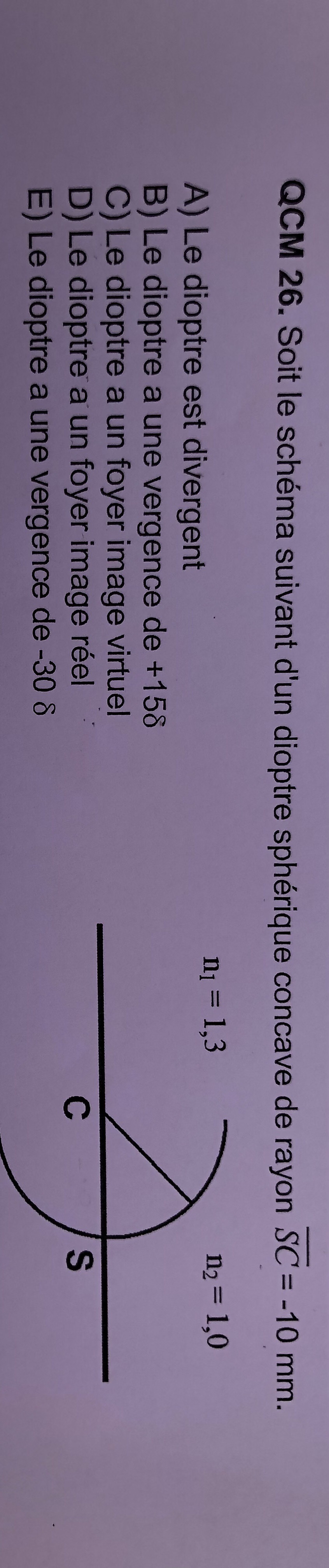 Or une vergence positive indique que ta lentille est convergente donc que ton ofyer image se trouve à droite de ta lentille selon le raisonnement que je t'ai expliqué plus haut donc l'item D est vrai