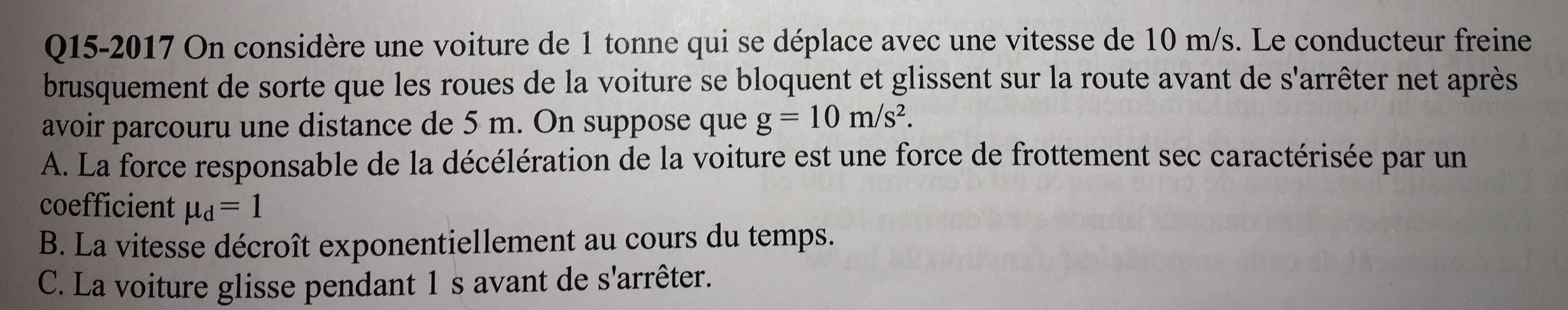 Le QCM 1 du cc 2016-2017 m'embrouille, je pensais que tu avais dit dans un post précédent que "lorsque la vitesse limite est atteinte, l'énergie mécanique est conservée puisque la vitesse est constante (sauf si Epp varie, mais si vitesse est constante alors Ec est cste aussi). Cependant le système n'est pas conservatif d'un point de vue mécanique car les forces de frottements sont dissipatives".