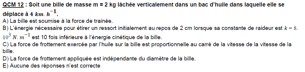 Dans le QCM 12 suivant, je ne comprends pas pourquoi on considère la vitesse en km.h^-1, il n'y a pas besoin de la convertir en m.s^-1 pour le calcul de l'Ec?