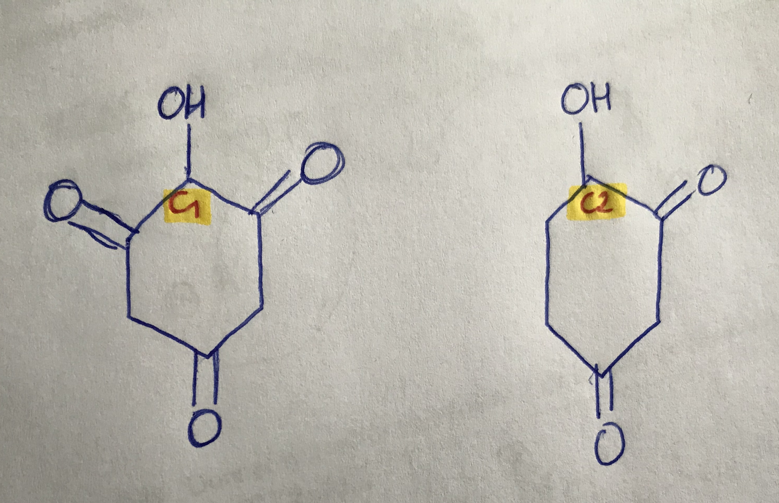 Le C1 de la première molécule n'est pas asymétrique car il possède les mêmes groupements sur c'est 2 autres C du cycle (elle est aussi achiral car centre de symétrie) Ce cas la OK
