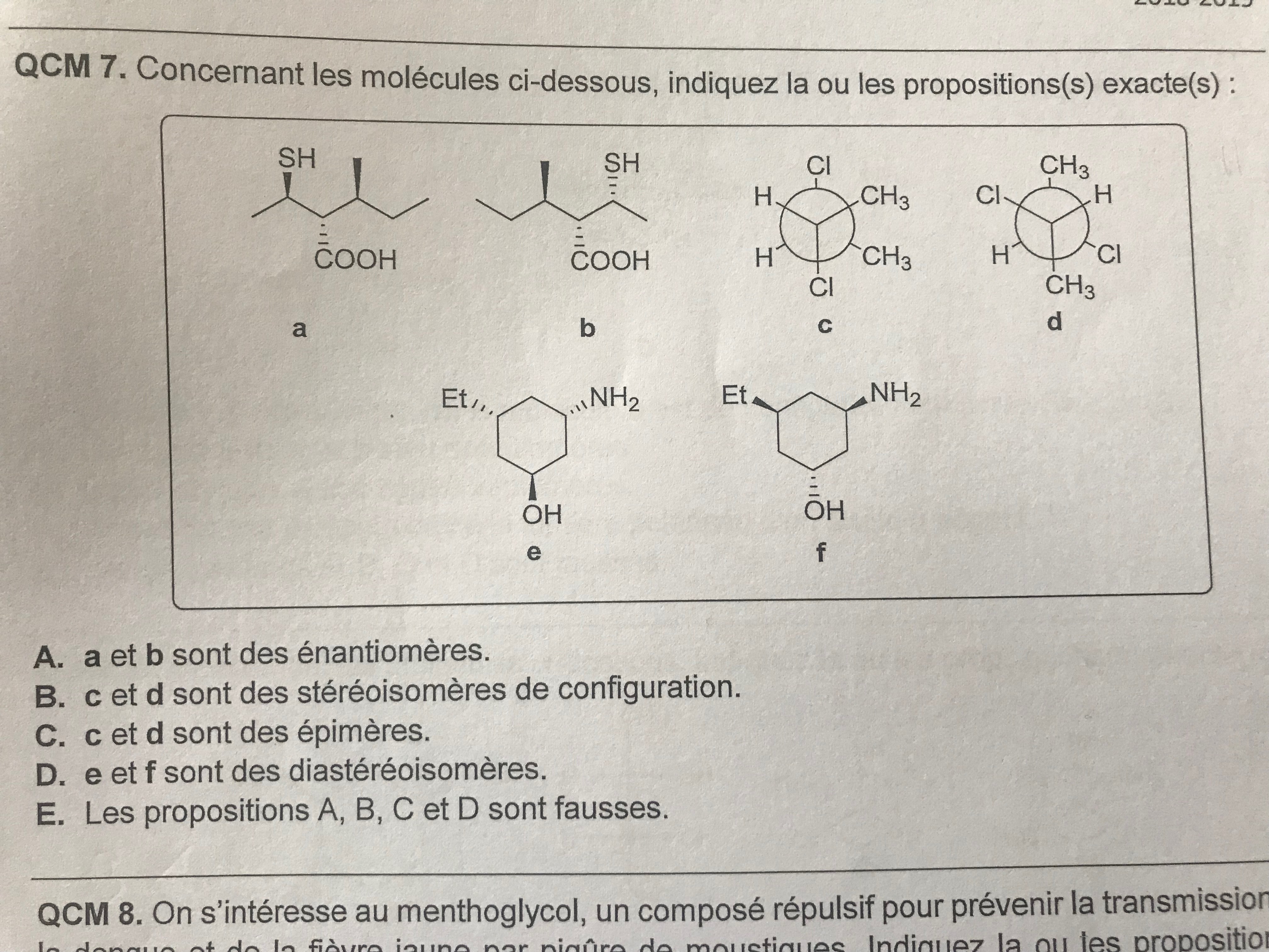 En effet dans le cours il y a marqué plus de deux carbones asymétriques or l’item C est compté juste ( et sûr ces deux molécules je ne compte que deux carbones asymétriques ) j’aurais donc répondu faux.