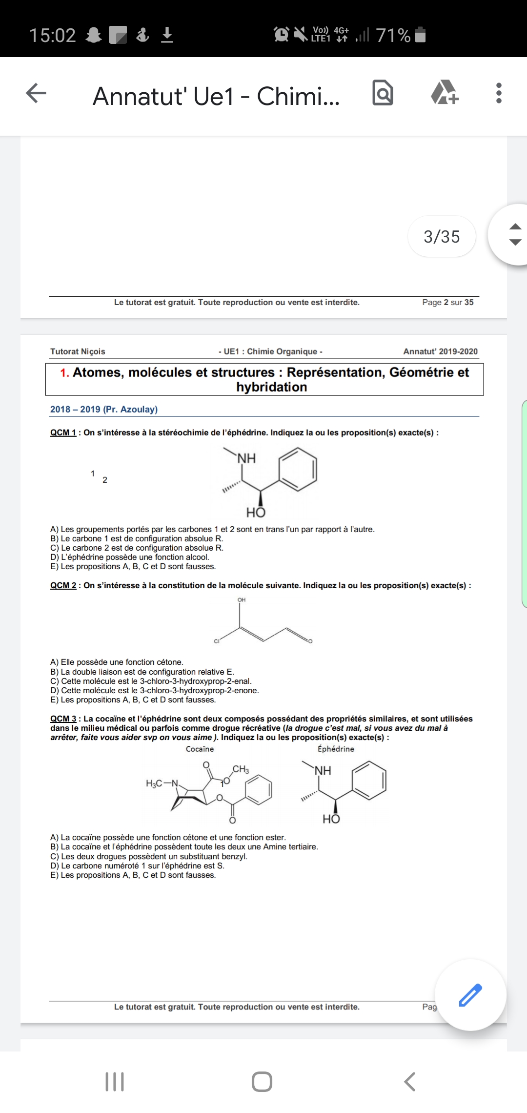 Salut, a propos du 1er qcm d'anatut 2019, le prof a pas dit qu'on parlait de position relative trans/cis pour les cycles ? La A devrait être fausse Non ? Merci