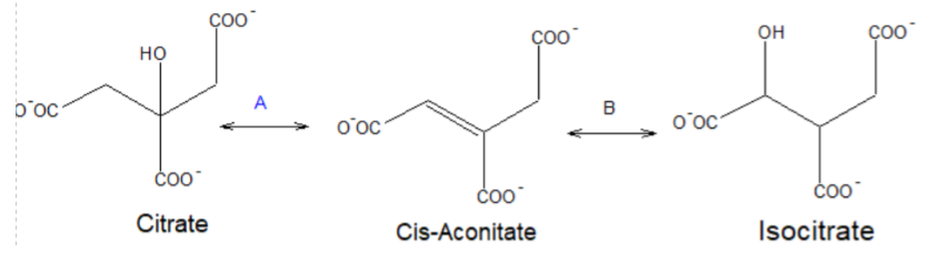 Lors de l'hydratation du cis-aconitate en présence de H2SO4 et de l'eau, on forme l'isocitrate comme suit :