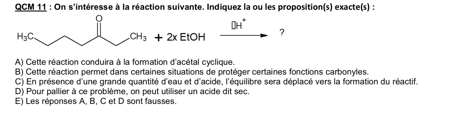 L'item A est compté faux (et effectivement je suis d'accord) mais quelles conditions il aurait fallu pour obtenir un acétal cyclique en fait ?
