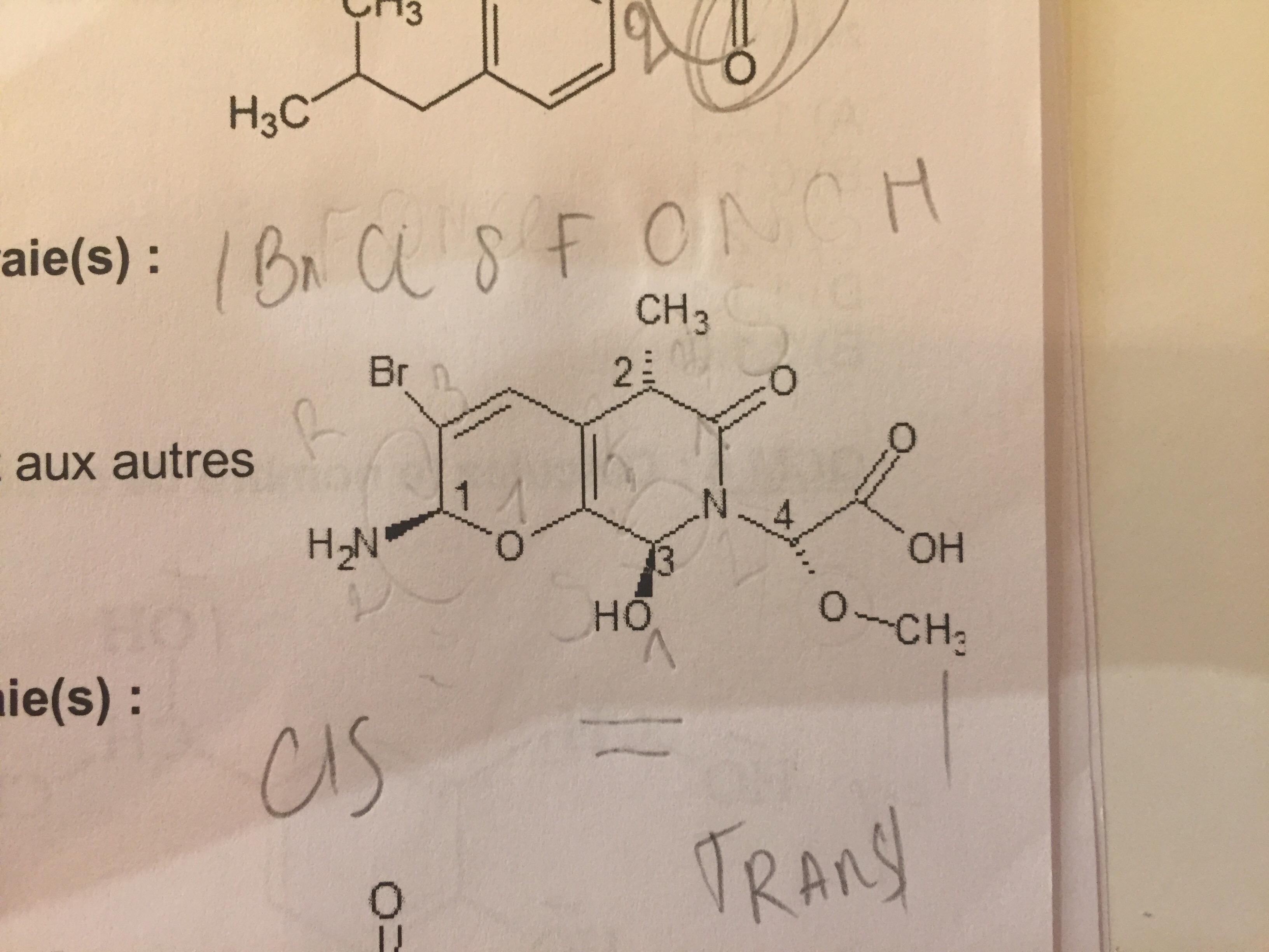 Alors voilà il est écrit : « Les groupements portés par les carbones 3 et 4 sont en cis les uns par rapport aux autres. »