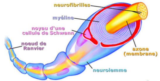 autour d'un prolongement axonalLes gaines de Schwann correspondent à