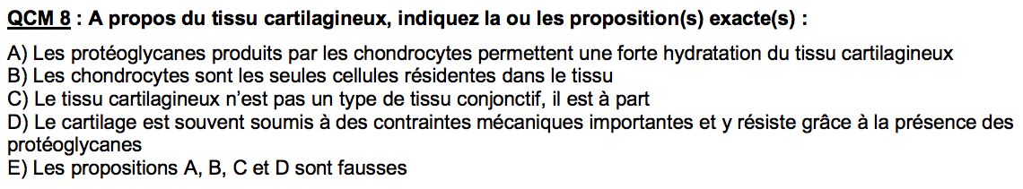 Alors sur ce QCM je ne comprend pas pourquoi l'item A est compté juste car dans la ronéo il y a marqué que c'est les GAGs qui sont responsable de l'hydratation du tissu cartilagineux et non les protéoglycanes... C'est possible d'avoir un éclaircissement sur cette notion svp ?