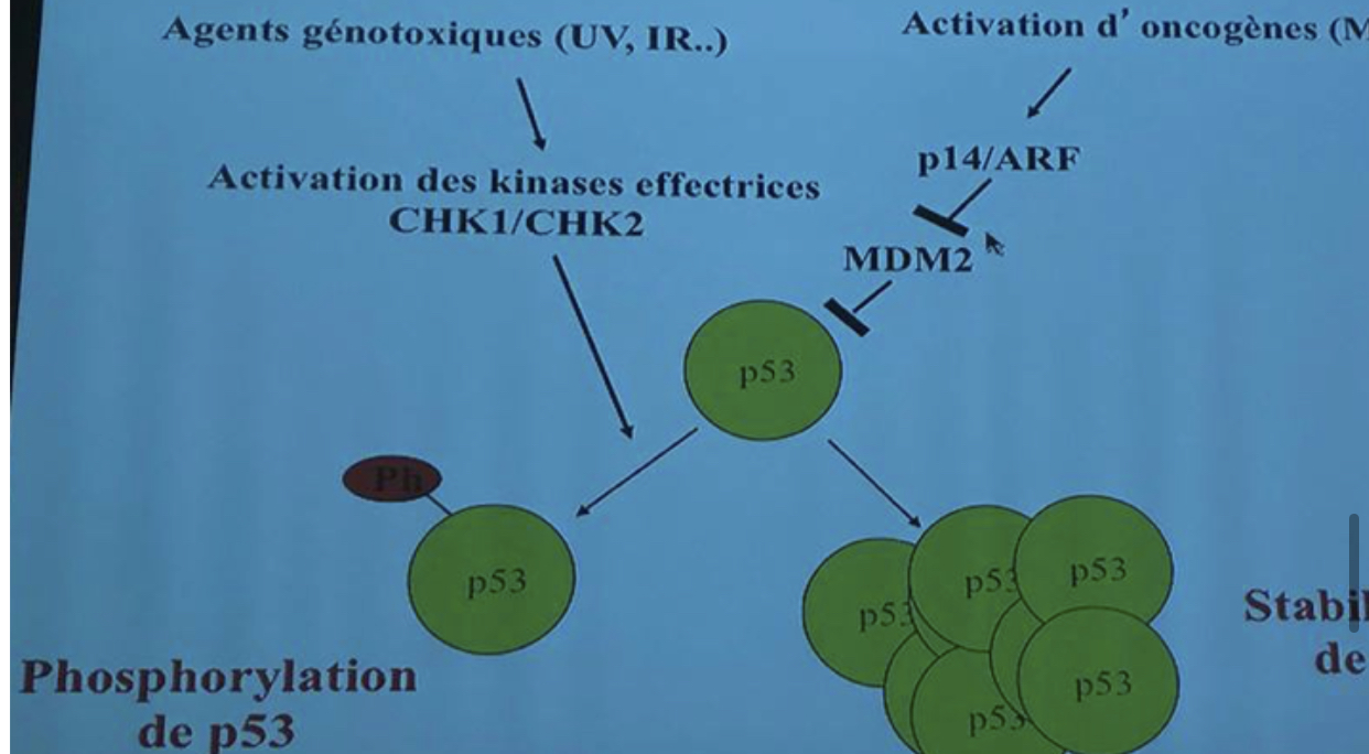 Et je te met la diapo du cours d’après (Cycle cellulaire) qui reconfirme encore cette version ! (Activation des kinases EFFECTRICES :chk1/chk2)
