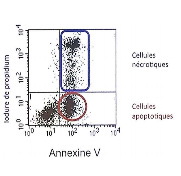 Pour ce qui est du marquage à l'annexineV/iodure de propidium, c'est exactement pareil. À la différence près que