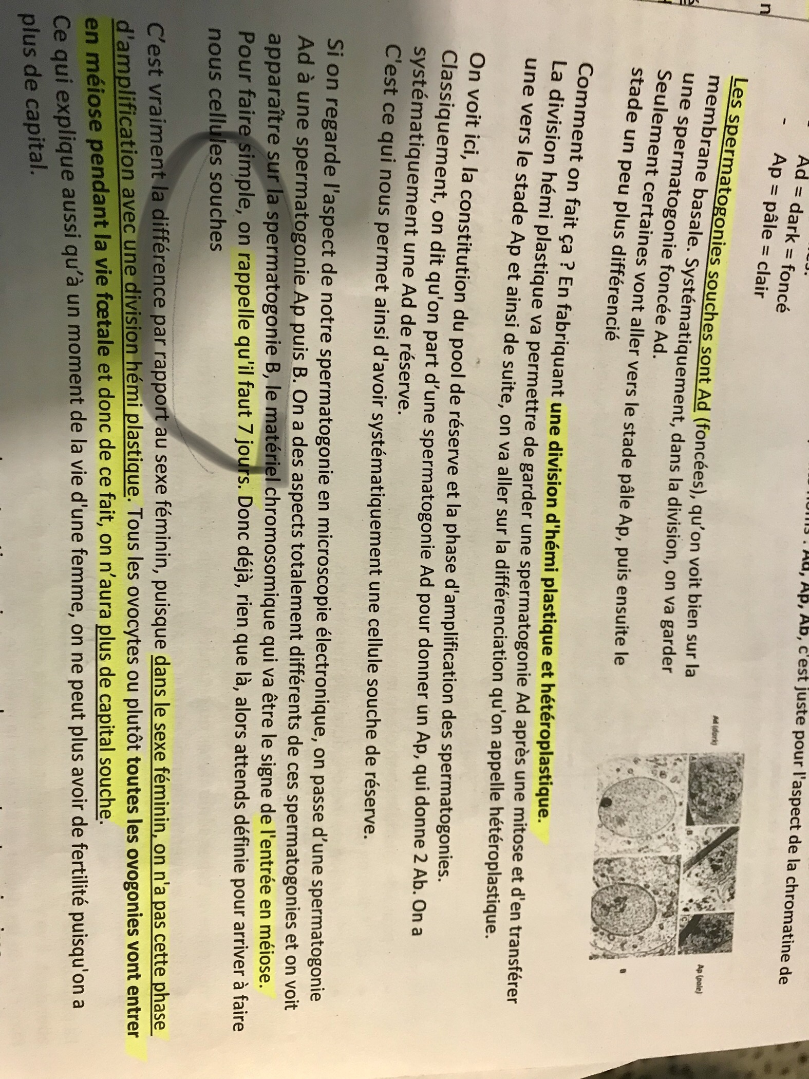 Les 7 jours ciblent la formation des cellules souches / des spermatogonies +++