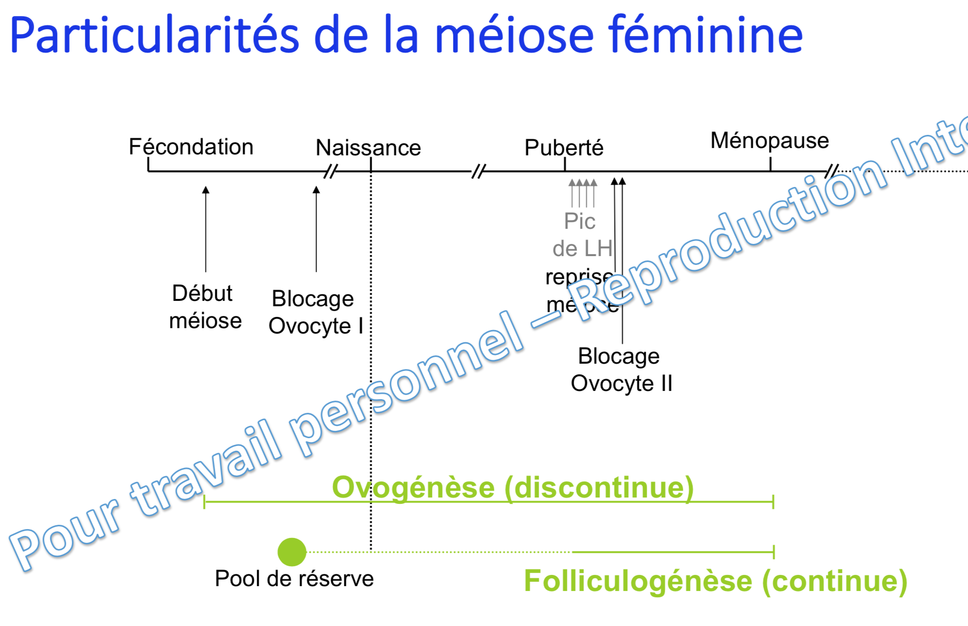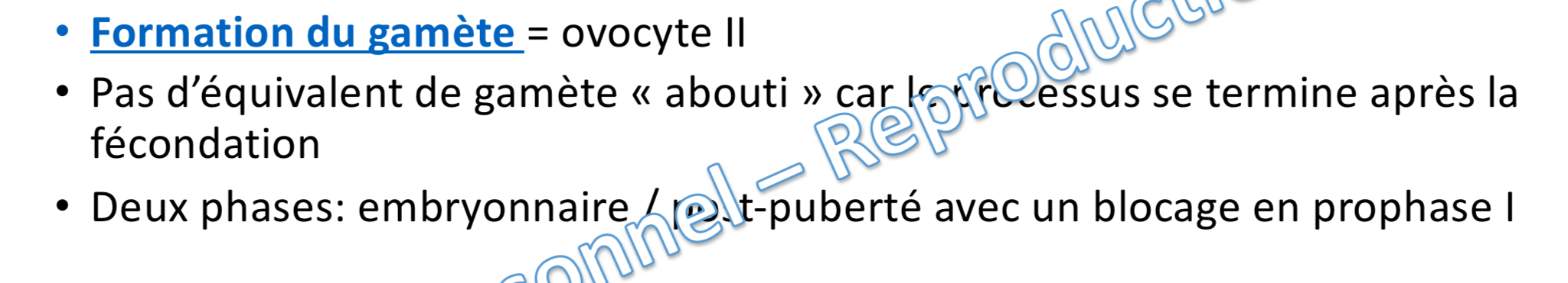 Donc soit lorsqu'il parlait de blocage en prophase I il parlait de la période embryonnaire mais pourquoi il ne l'a pas spécifié plutôt dans la phrase (au lieu de le mettre après "post puberté") ou soit il s'embrouille tout seul
