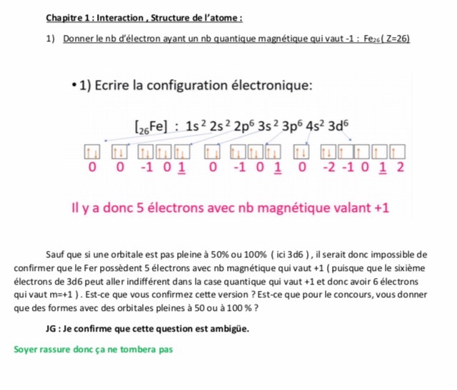 Dans le QCM2: L’item D dit « il existe 8 électrons caractérisés par un nombre magnétique m=1 dans l’atome Y » Suite au réponse du professeur, comme dans l’OA 4d il n’y a qu’un électron ( donc ni rempli à 50% ni 100% ) n’est il pas impossible de confirmé qu’il existe 8 électrons avec m=1