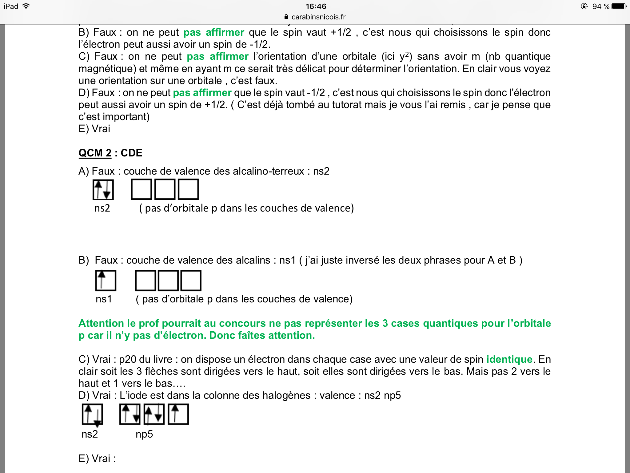 Dans ta remarque en vert, si le prof ne met pas les 3 orbitales p vides on doit qd meme compter juste ? C'est ca que t'as voulu dire ?