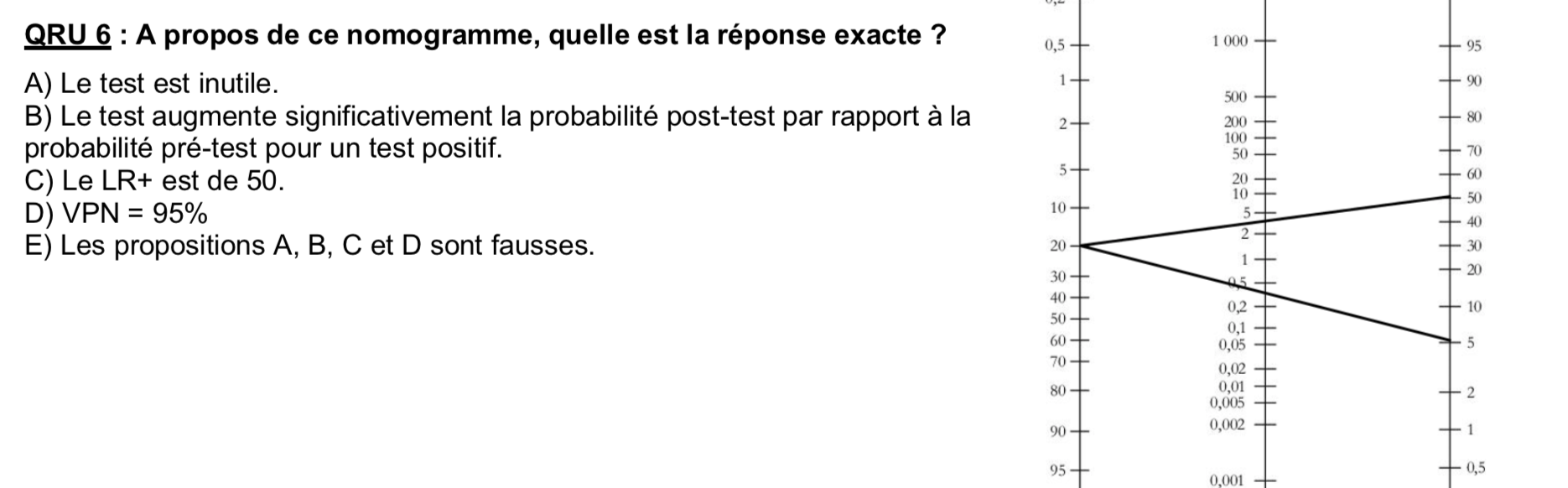 Salut, c'est possible de m'expliquer comment résoudre ce qcm (surtout comment lire le nomogramme) ?