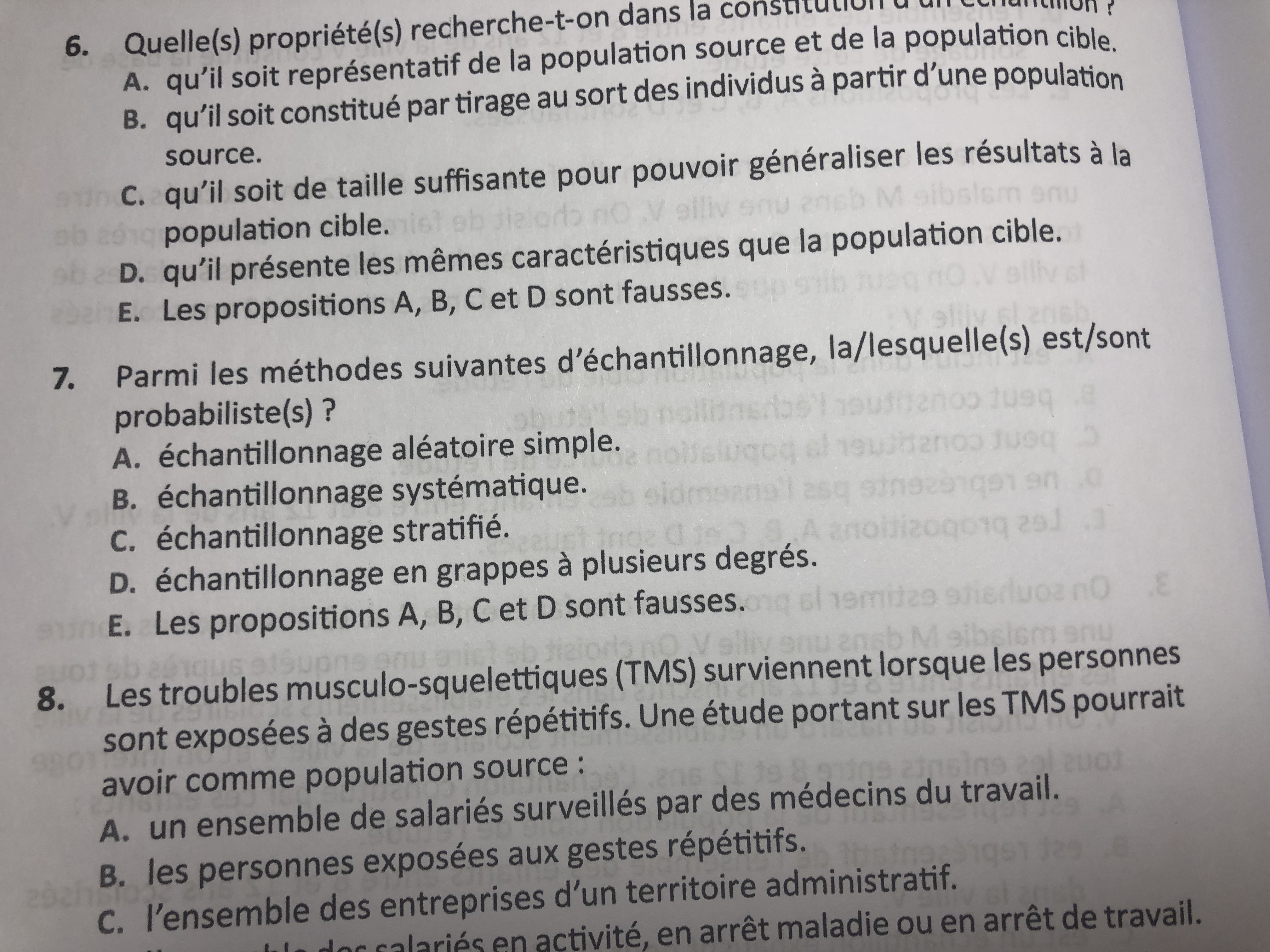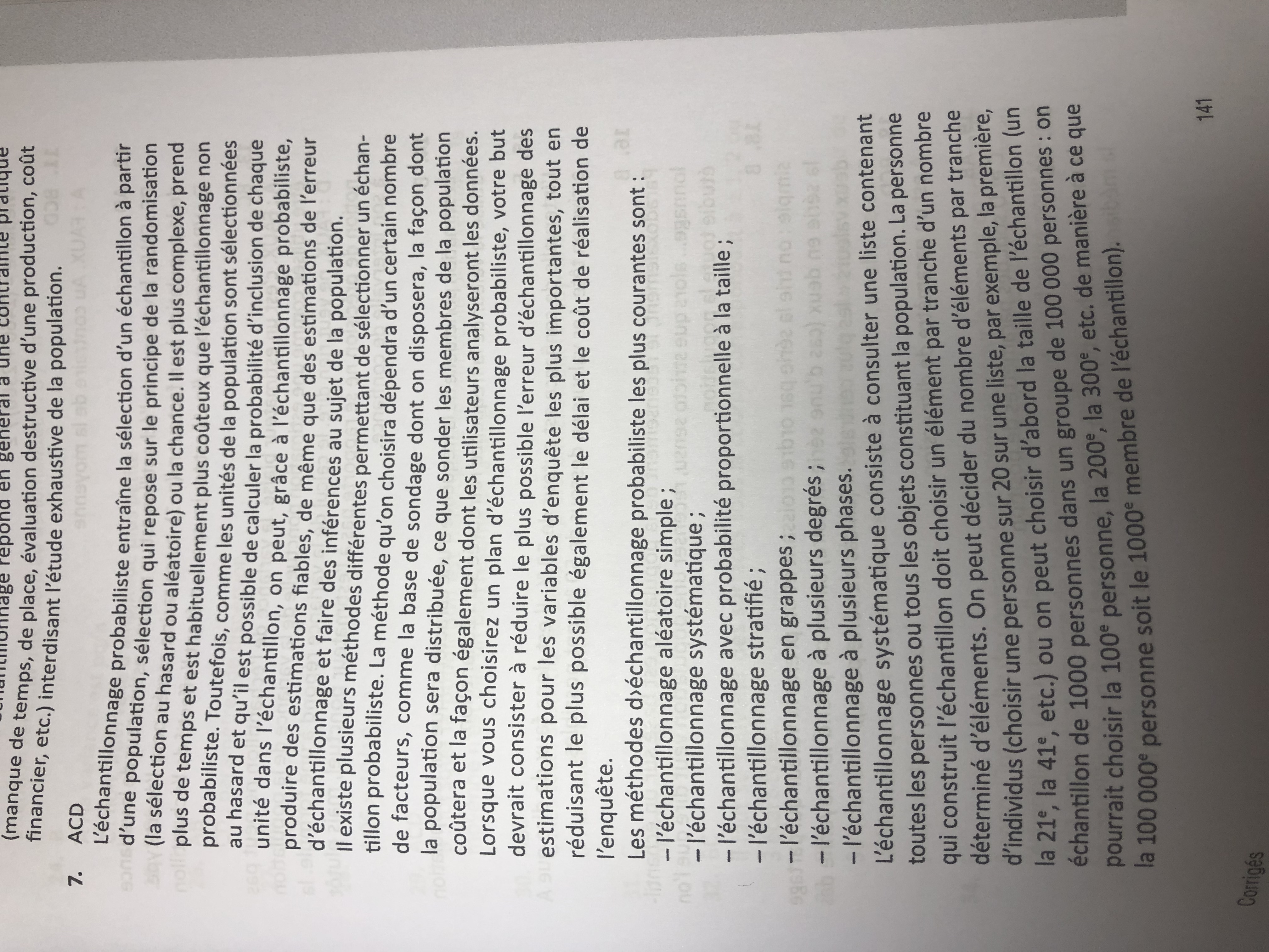 La question est quelles sont les méthodes probabilistes, j'ai mis ABCD mais dans la correction il compte faux la B "échantillonnage systématique".