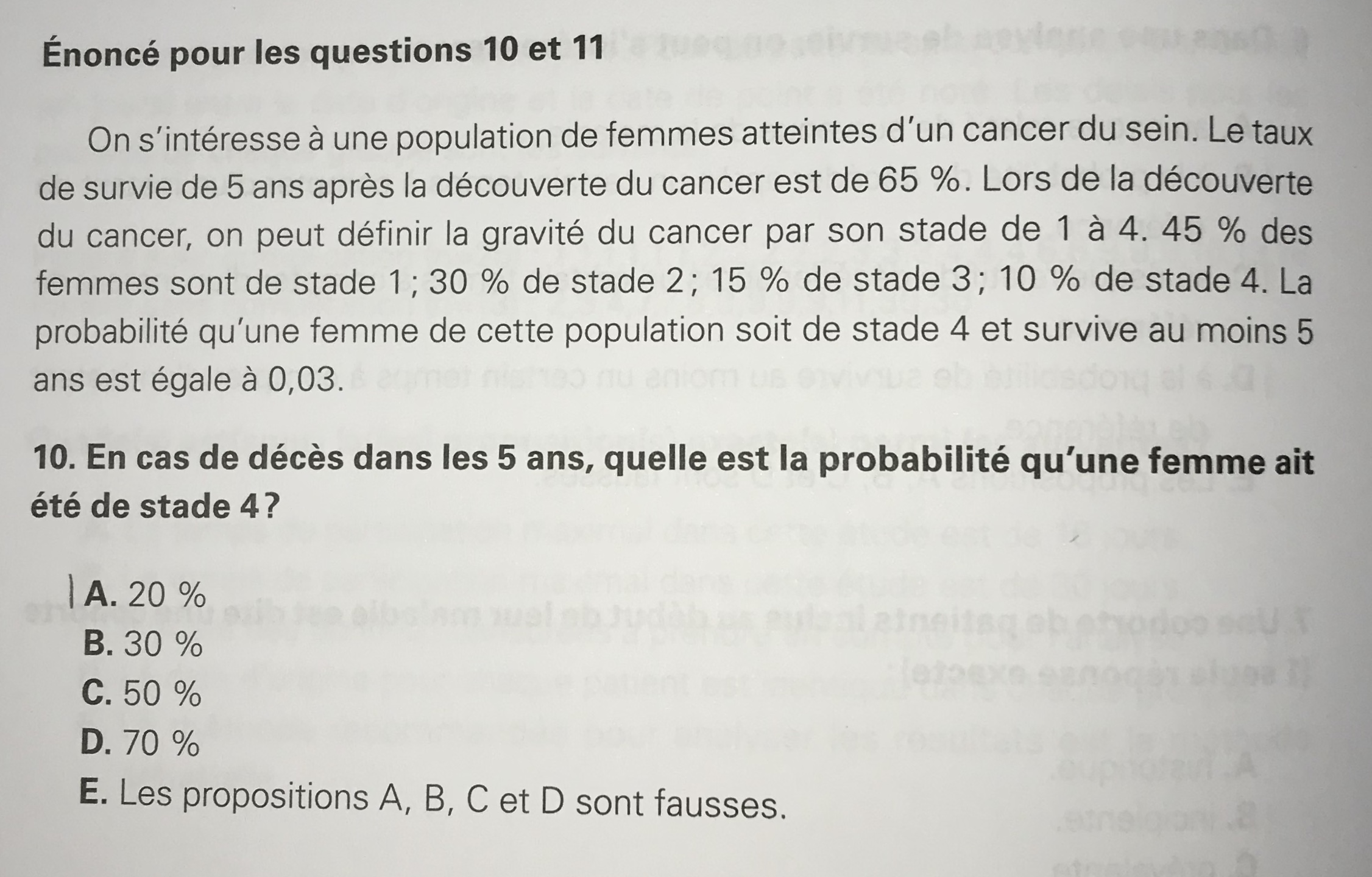 Dans la correction j’arrive pas à comprendre d’où Le prof sort le 70% pour P(C|A) parce que pour moi on devrait utiliser la formule P(C|A) = P(AinterC) / P(A) = 0,03/0,1 = 0,3 ... du coup si vous pouviez m’éclairer,
