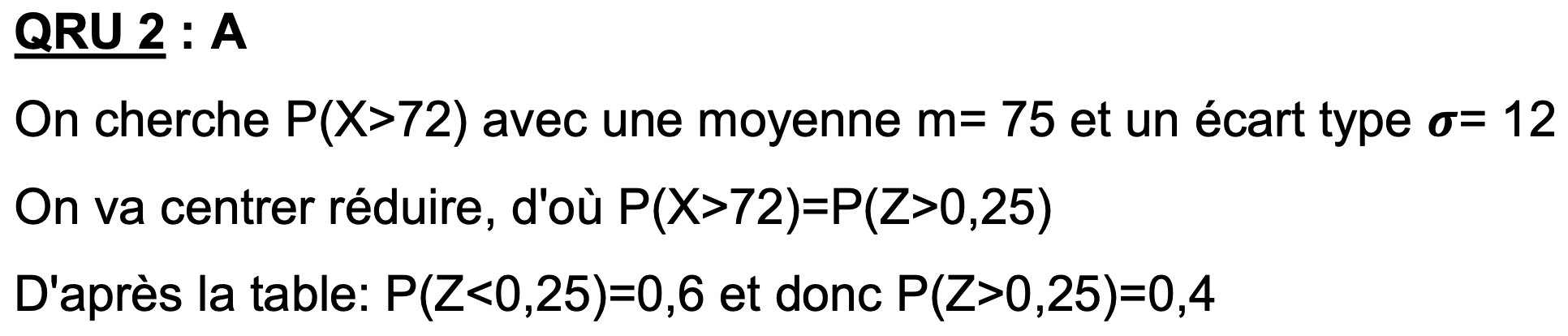 Or, p(X>= -t) = p(x <= t) et p(x < o,25) = 0,6