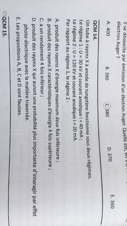 Dans ce qcm j'avais compté l'item B juste mais apparemment il ne l'est pas ... Du coup je voudrais savoir ce que le prof entend par "rayon X caractéristique d'énergie" parceque pour moi ça veut dire la même chose que "rayon X d'énergie" ...
