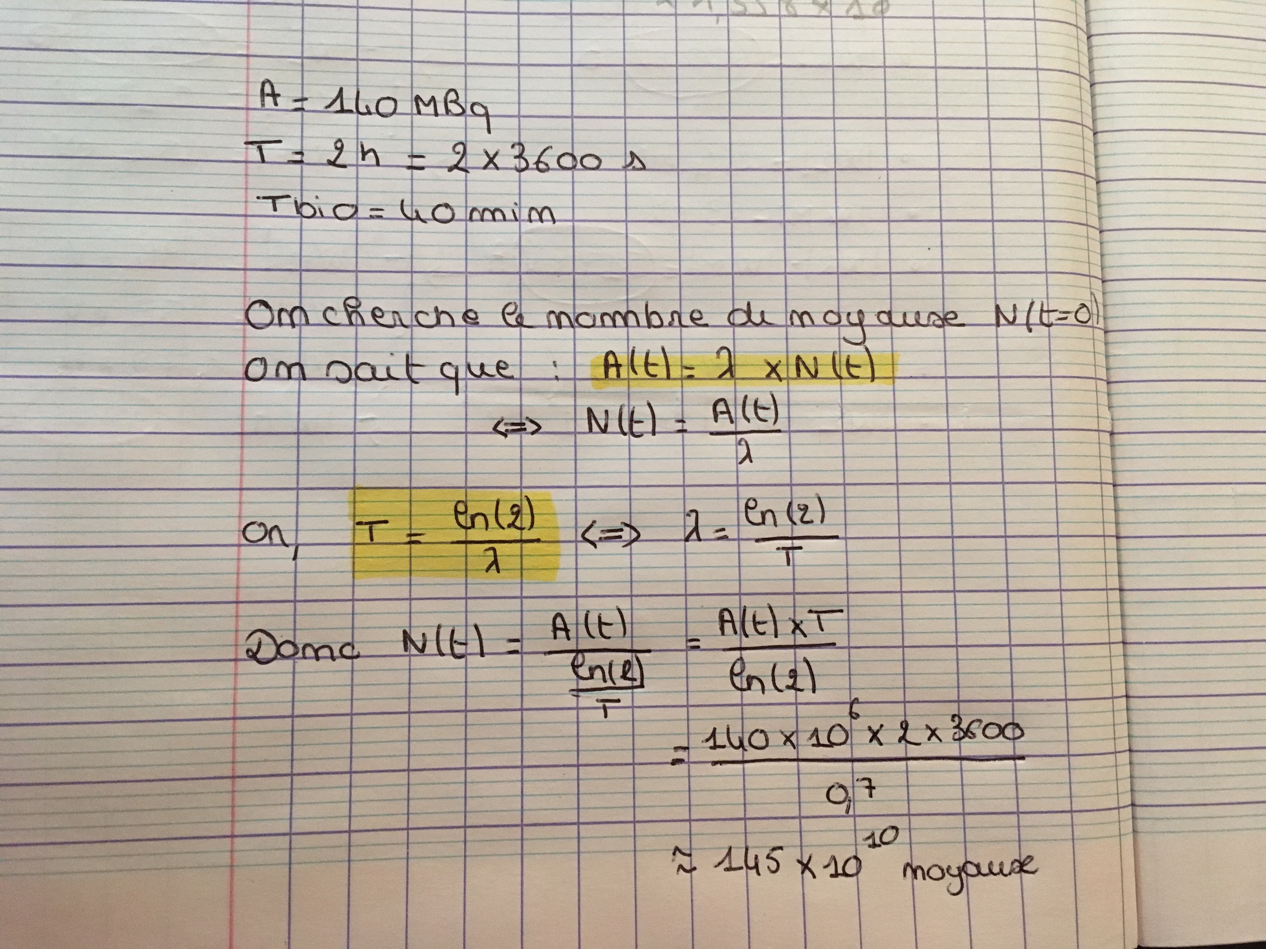 Je ne comprends pas la correction de l'item A des annatuts 2018 sur les lois cinétiques (page 50) : je ne comprends pas comment ils trouvent la période dans le calcul de l'item A pour trouver le nombre de noyaux ? :question: