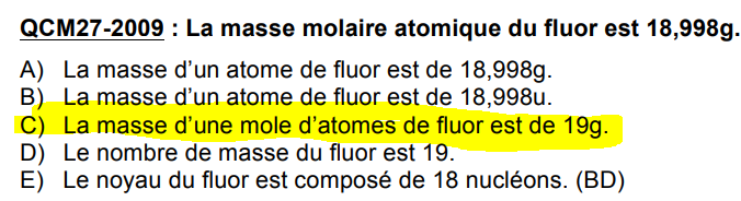 • Valeur entière la plus proche de la masse d’une mole d’atomes (en 𝑔)