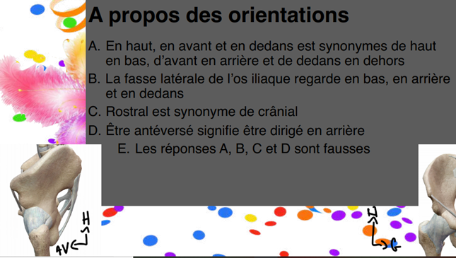 ,Es-tu d'accord qu'ici l'item B est a compté faux puisque qu'il aurait fallu remplacer : La fasse latérale de l’os iliaque regarde en bas, en arrière et en DEHORS ? merco