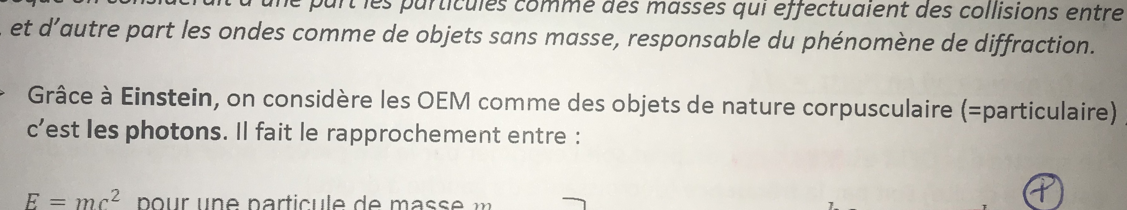 Einstein a consideré une OEM comme un objet de nature corpusculaire = particulaire ( les photons )