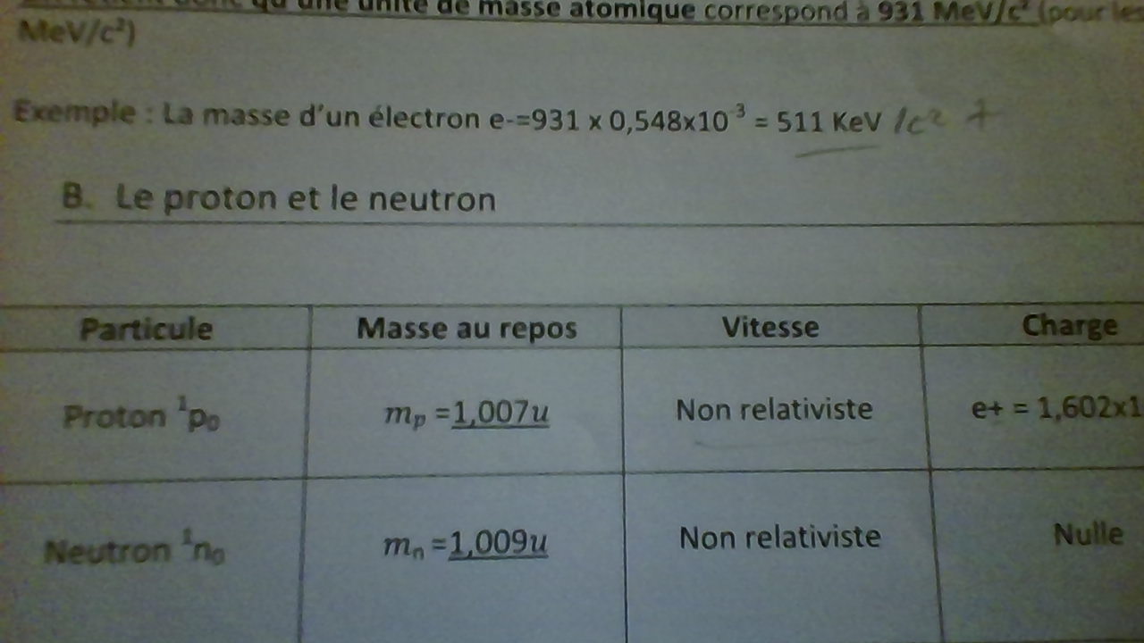 Oui oui j'apprends ça du coup mais ça m'embête et dans les premiers cours on dit que l'électron fait 511 keV/c² je crois non ?