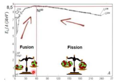 J'ai du mal avec le fait qu'on puisse dire que lorsqu'on a une augmentation du défaut de masse on a une augmentation EL/A mais une libération d'énergie. Une libération me fait penser qu'on relâche de l'énergie qu'il y a une perte alors que se défaut de masse correspond à l'énergie donc pour moi ce serai plutôt un gain d'énergie et pas une libération