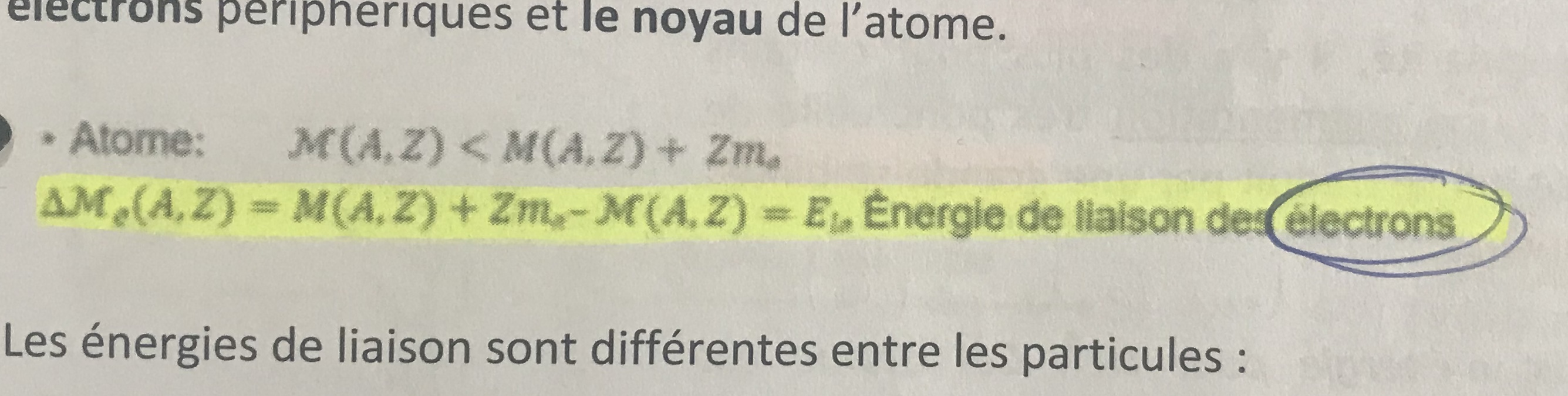 Mais comme cette énergie de liaison des électrons est négligeable (KeV) on considère que c’est l’énergie de liaison des nucléons au sein du noyau