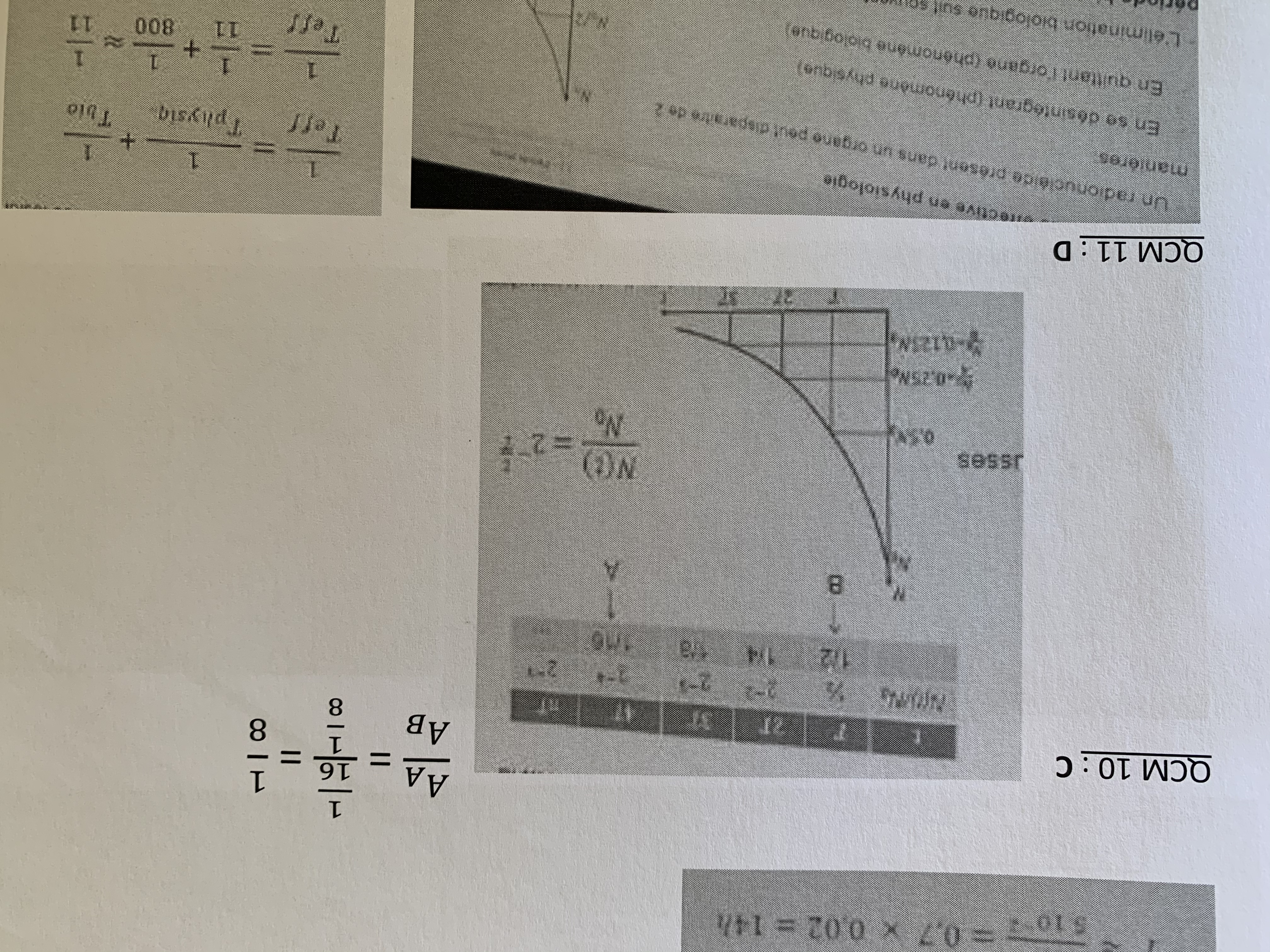 pour B, seulement une période se sera écoulée donc son activité sera de A(b)/2=1/2 (je pense qu'il s'est trompé il a mis 1/8 sur la feuille)