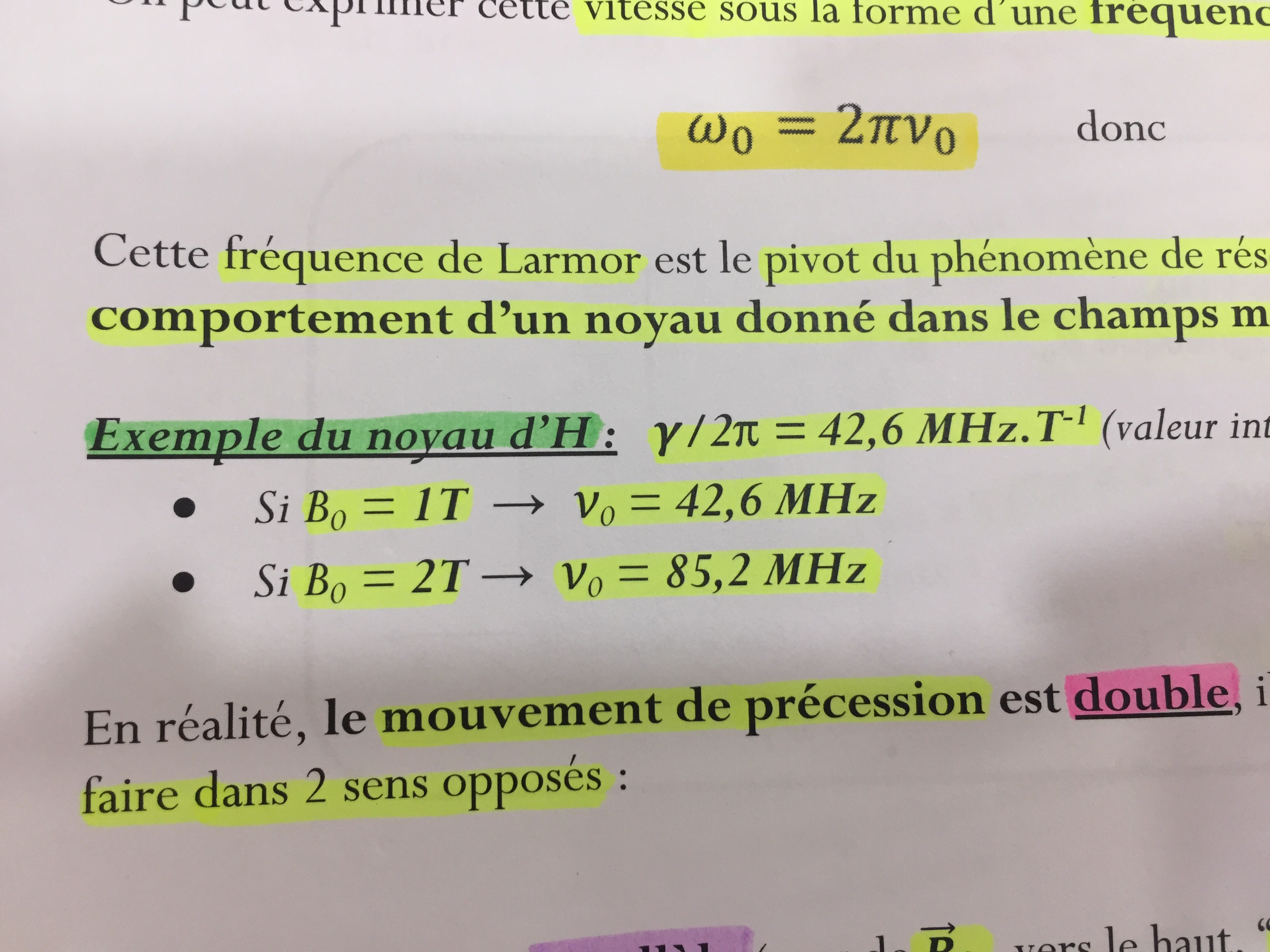 C'est une errata de l'année dernière, dans un champ magnétique de 1 Tesla, les protons ont une fréquence de Larmor de 46,2 MHz