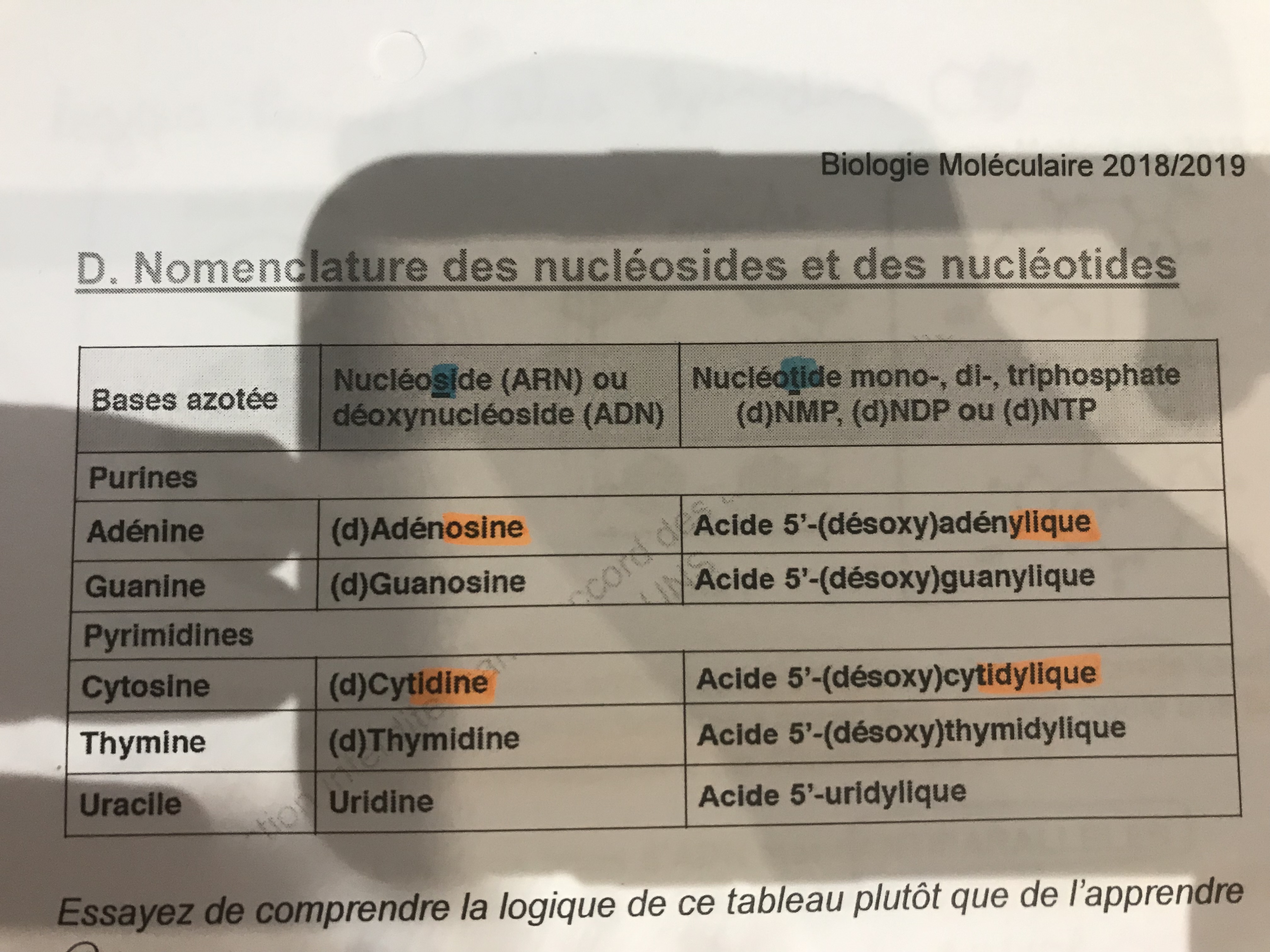 Pour rappel les nucléotides résultent de la phosphorylation des nucléosides.