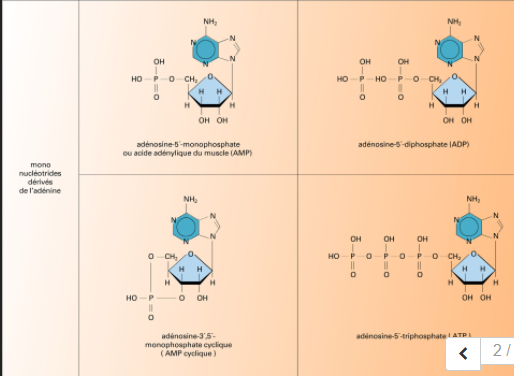 Si on prend l'exemple du nucléoSide Adénosine (schéma 1), le schéma 2 te montre les principaux nucléotides que l'on peut obtenir par sa phosphorylation ; les mêmes types de combinaisons sont possibles à partir de tous les autres nucléosides.