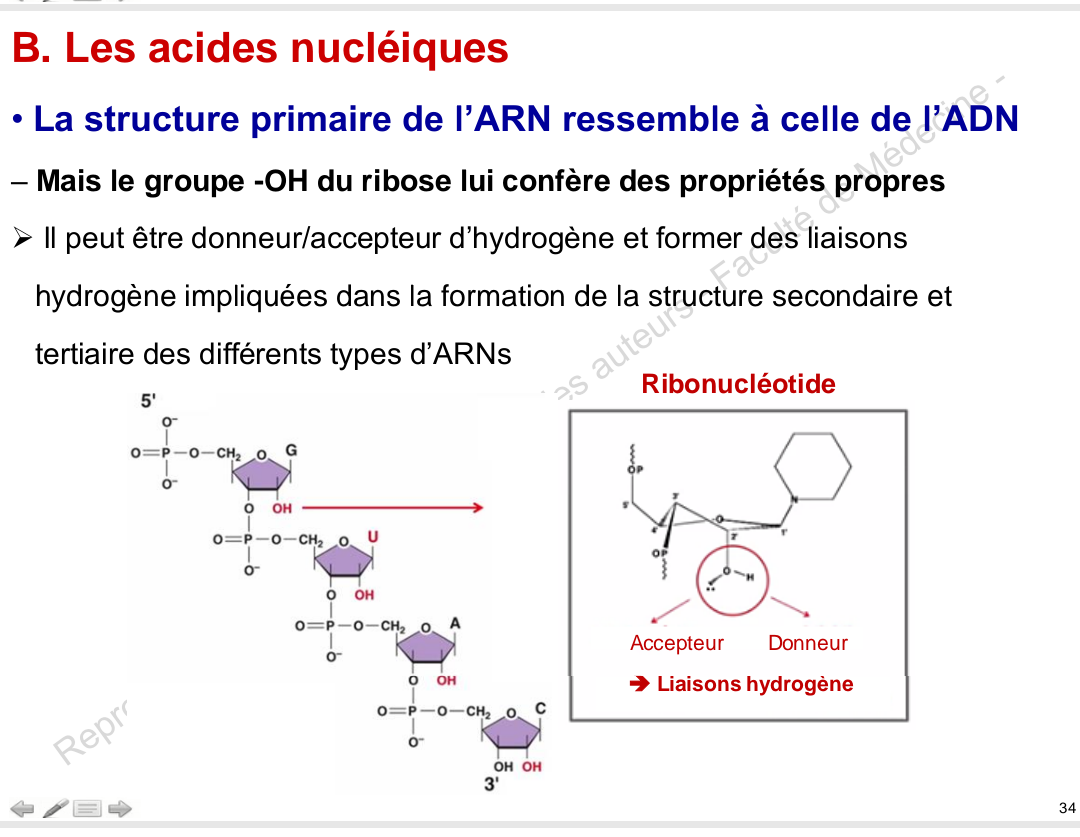 Et puis dans un qcm d'annales, c'est écrit: 'le groupement 3'-OH est impliqué dans la structure secondaire de l'ARN par formation de liaisons hydrogènes." => mais du coup c'est la structure secondaire qui a des propriétés particulière avec ce fameux OH, et est ce bien le 3'-OH qui permet ça et pas plutôt le 2'??