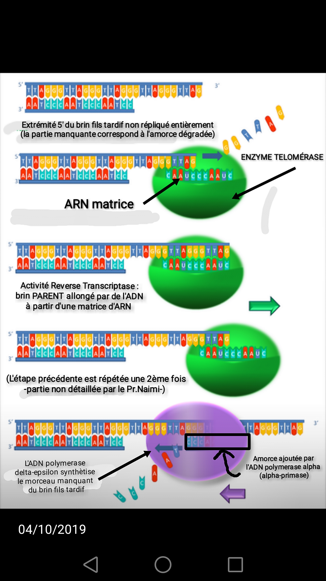 Dans le cours on nous parle de l'action de la télomérase sauf que je ne comprend pas comment elle fonctionne (comment elle arrive à allonger le brin tardif fils en 5'? pourquoi elle forme une T-loop?)